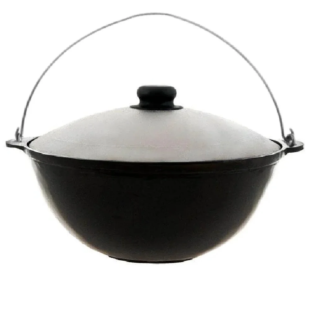 Узбекский казан чугунный 6л (3-4 персоны) крышка, подвесная ручка (круглое дно) Наманган